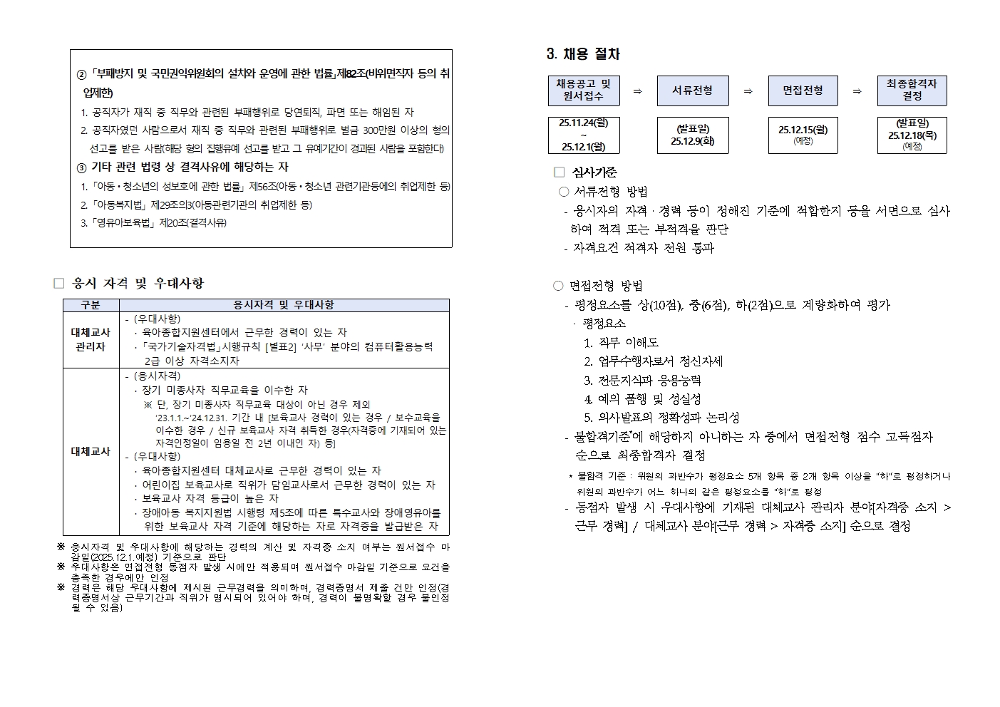| [³²µ¿±¸] 2026³â ¾î¸°ÀÌÁý ´ëü±³»ç Áö¿ø»ç¾÷ ±â°£Á¦±Ù·ÎÀÚ Ã¤¿ë °ø°í | |||||