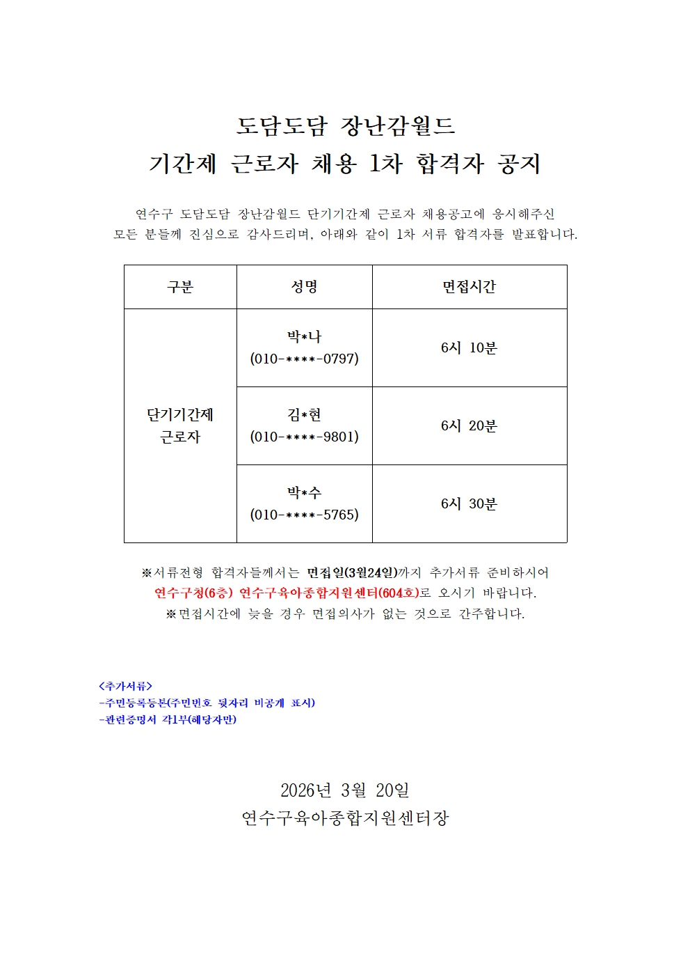 | [º»¼¾ÅÍ] µµ´ãµµ´ãÀå³°¨¿ùµå ±â°£Á¦±Ù·ÎÀÚ Ã¤¿ë 1Â÷ ÇÕ°ÝÀÚ °øÁö | |||||