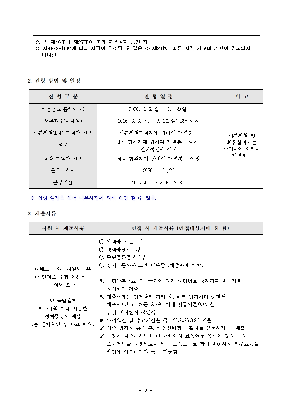 [º»¼¾ÅÍ] 2026³âµµ ¿¬¼ö±¸À°¾ÆÁ¾ÇÕÁö¿ø¼¾ÅÍ ´ëü±³»ç ä¿ë °ø°í