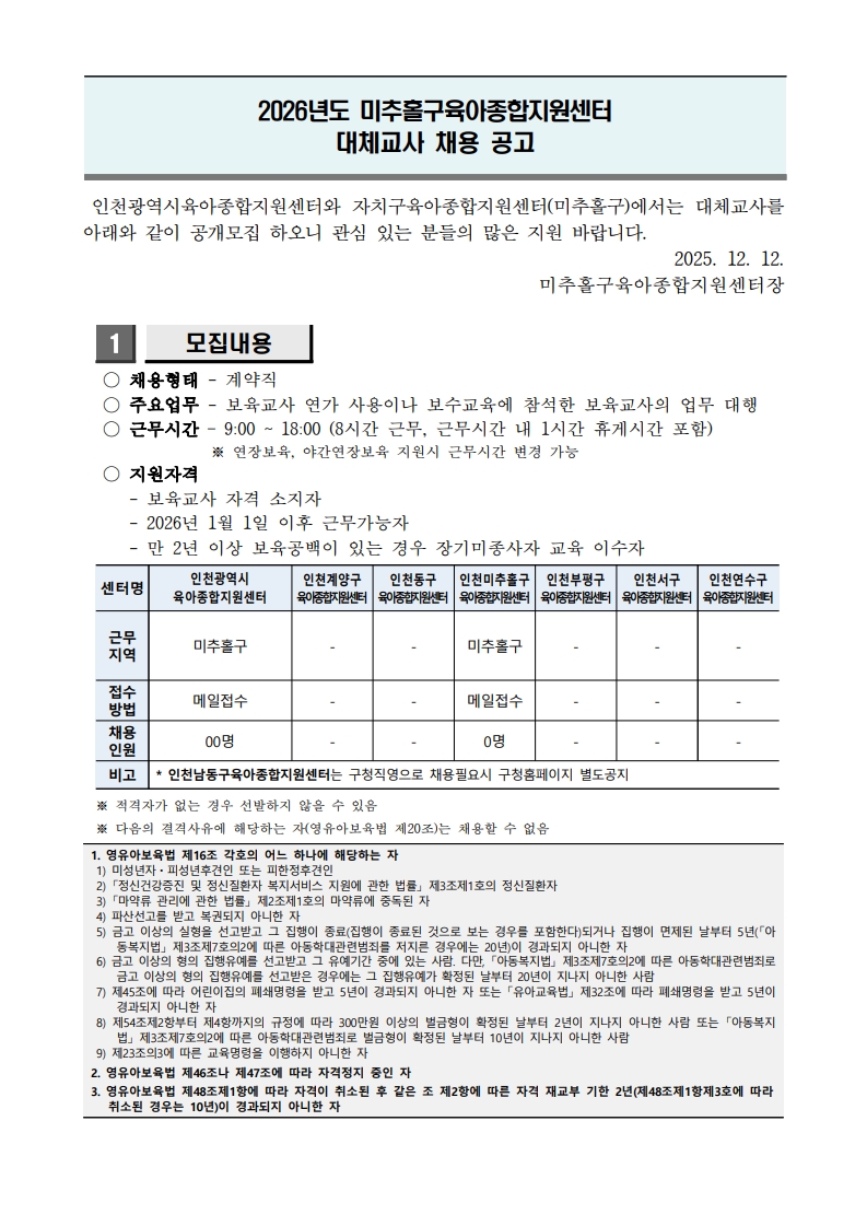[¹ÌÃßȦ±¸À°¾ÆÁ¾ÇÕÁö¿ø¼¾ÅÍ] 2026³â ´ëü±³»ç ä¿ë°ø°í