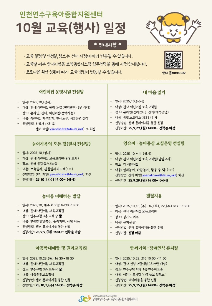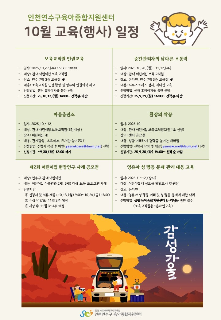 [º»¼¾ÅÍ] 10¿ù ¾î¸°ÀÌÁýÁö¿øÆÀ ±³À°(Çà»ç) ÀÏÁ¤ | |||||