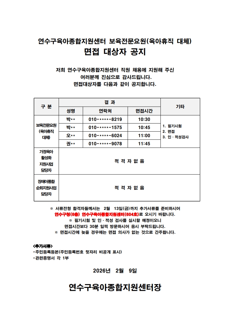 [º»¼¾ÅÍ] Á÷¿ø(°è¾àÁ÷) ¸éÁ¢ ´ë»óÀÚ °øÁö