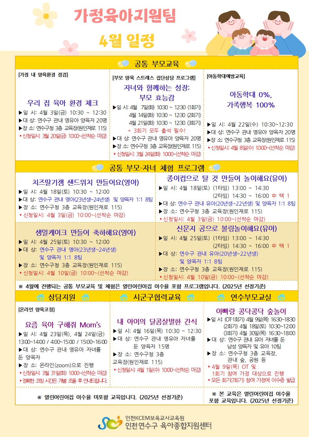 | ÀÌÀü±Û ¡ã | [º»¼¾ÅÍ] 4¿ù ¾î¸°ÀÌÁýÁö¿øÆÀ ±³À°(Çà»ç) ÀÏÁ¤ | ||||