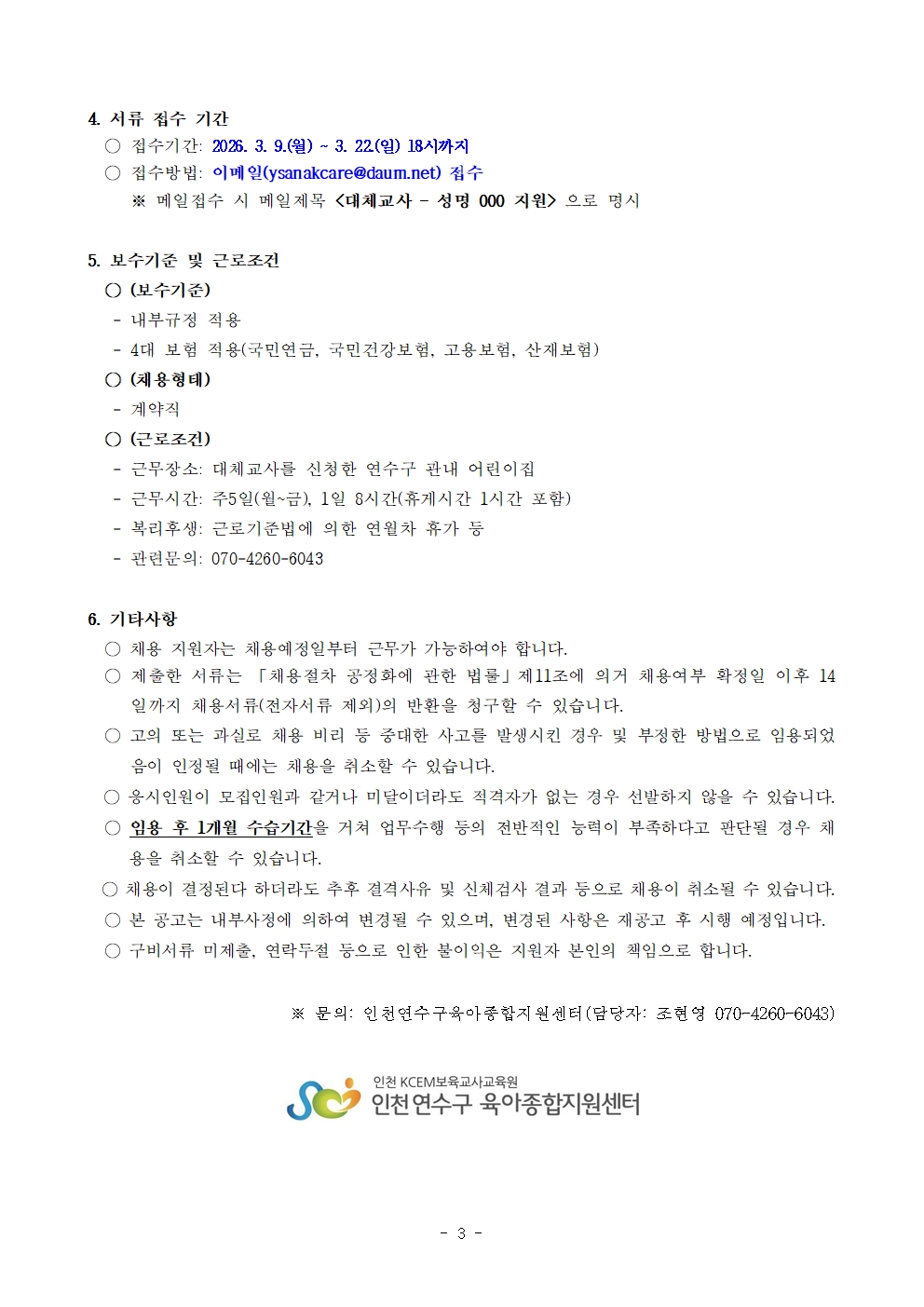 [º»¼¾ÅÍ] 2026³âµµ ¿¬¼ö±¸À°¾ÆÁ¾ÇÕÁö¿ø¼¾ÅÍ ´ëü±³»ç ä¿ë °ø°í