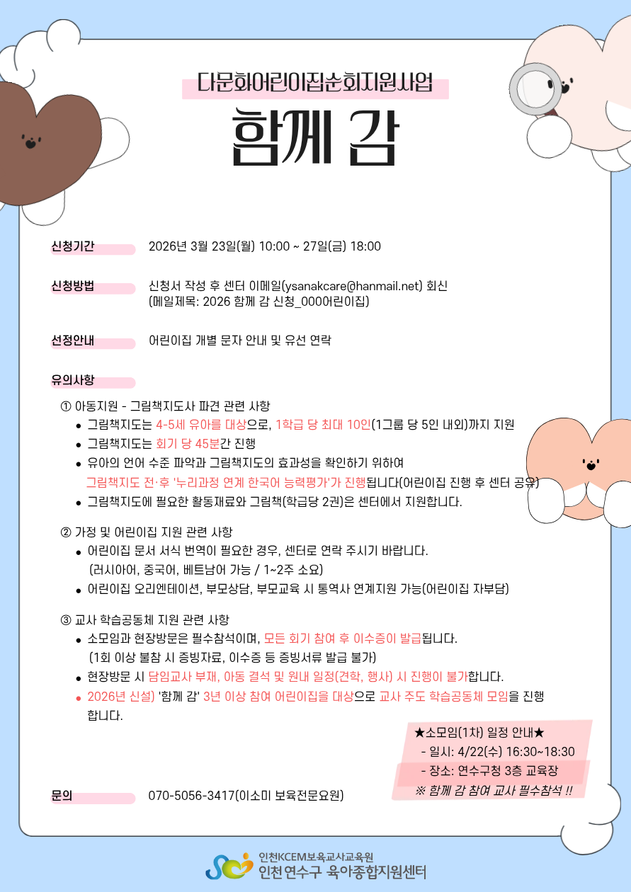 [º»¼¾ÅÍ] 2026 ´Ù¹®È¾î¸°ÀÌÁý¼øÈ¸Áö¿ø»ç¾÷ 'ÇÔ²² °¨' ½Åû¾È³»