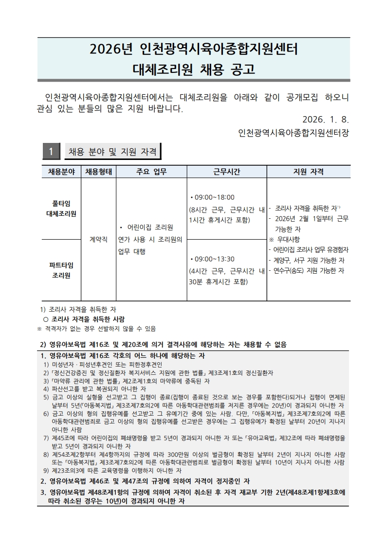 | [ÀÎõ½ÃÀ°¾ÆÁ¾ÇÕÁö¿ø¼¾ÅÍ] ´ëüÁ¶¸®¿ø ä¿ë °ø°í | |||||
