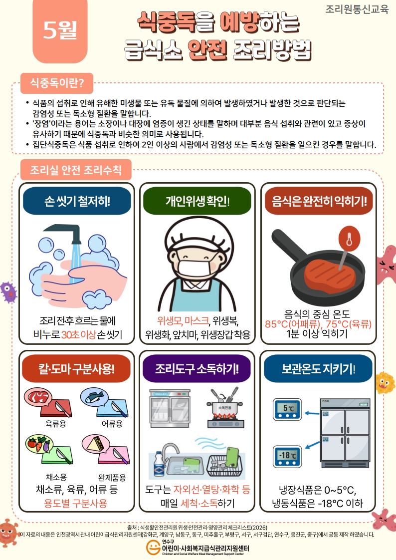 | 2026³â 5¿ù Á¶¸®¿ø Åë½Å¹®(½ÄÁßµ¶À» ¿¹¹æÇÏ´Â ±Þ½Ä¼Ò ¾ÈÀü Á¶¸®¹æ¹ý) | |||||